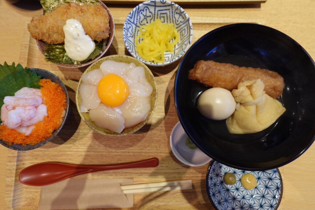 新鮮な海鮮を使った海鮮丼はもちろん、あごだしおでんを楽しめるお店もあるため、