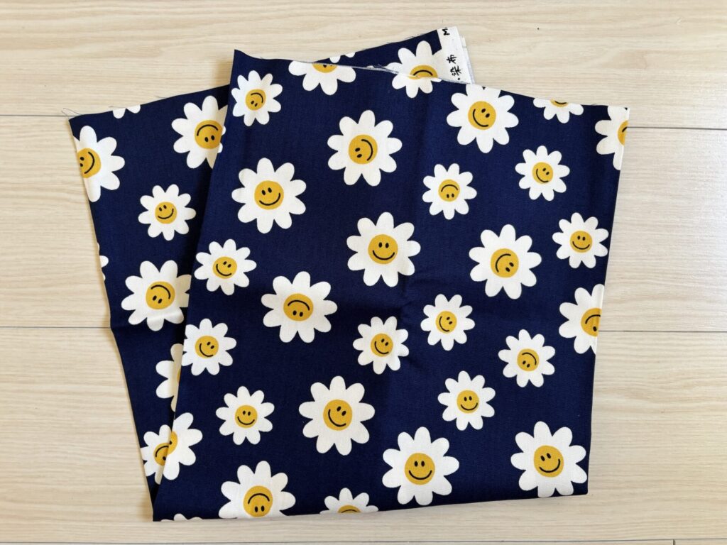 今回表布は手芸屋さんで一目ぼれした、にこちゃんの布に。